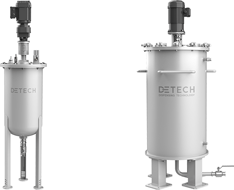 中轉罐可以暫存從膠桶中抽出的膠水,是實現換料不停機的常用選擇。另外,還可以對膠水進行除氣泡,抽真空,攪拌,加熱等處理,使填料混合均勻,保證膠水使用質量,提高膠水利用率。